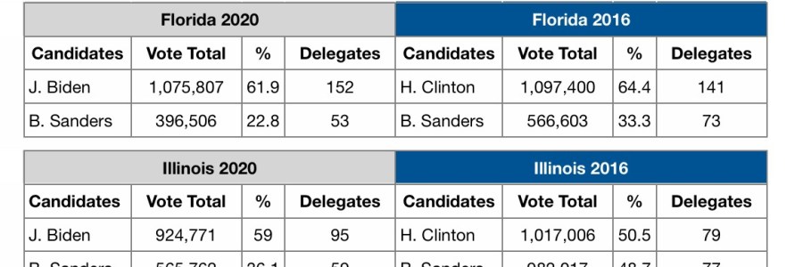 Before the votes were cast last Tuesday, former Vice President Joseph Biden led Vermont Senator Bernard Sanders in polls in Florida, Illinois, and Arizona. After several weeks of disappointing results, the Sanders campaign is all but dead in the water as the march to the Democratic presidential nomination continues. As the complete results are available,… Read More On Super Tuesday III, Biden Outshines Sanders by Significant Margins